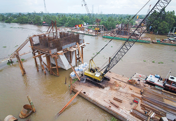 Thi công cầu Vàm Xáng.