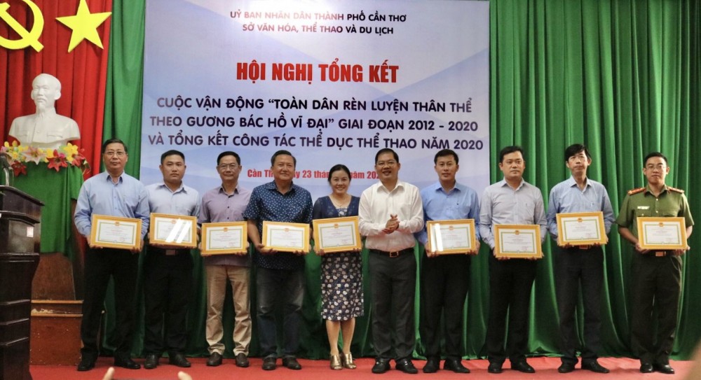 Ông Nguyễn Khánh Tùng, Giám đốc Sở Văn hóa, Thể thao và Du lịch TP Cần Thơ khen thưởng cho các cá nhân và tập thể đạt thành tích tốt trong Cuộc vận động “Toàn dân rèn luyện thân thể theo gương Bác Hồ vĩ đại” giai đoạn 2012-2020.
