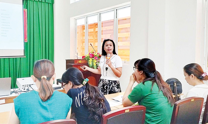 Ths Đoàn Thị Kim Phượng tập huấn cho cán bộ y tế về xét nghiệm HIV. Ảnh: H.HOA