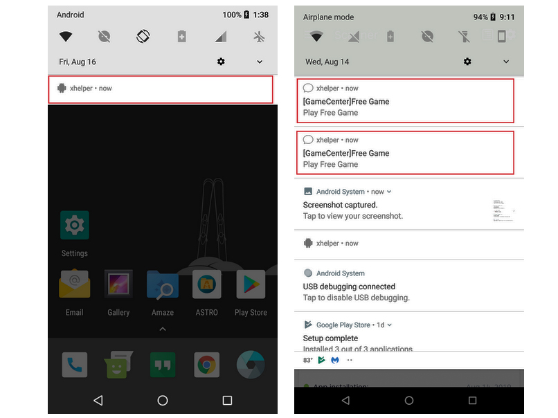 Sau khi lây nhiễm thành công một thiết bị, virus xHelper sẽ bắt đầu hiển thị các quảng cáo nổi ngẫu nhiên và tải về các ứng dụng độc hại khác. Ứng dụng lây nhiễm mã độc cho thiết bị Android đã bị giấu đi nên người dùng không thể tìm thấy và mở nó, nhưng nó sẽ tự chạy khi thiết bị được gắn vào hay ngắt khỏi nguồn điện, khởi động lại, cài đặt hay gỡ bỏ một ứng dụng.