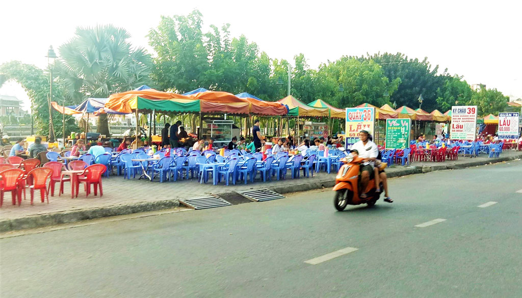 Vào các buổi chiều, những quán ăn vỉa hè trên các tuyến đường trên địa bàn TP.Tân An hoạt động “hết công suất” để phục vụ thực khách với những món ăn phổ biến như lẩu, bánh tráng nướng, chè, bánh mì muối ớt,... Đặc điểm chung của các hàng quán này là các loại nguyên liệu đều được cất trữ rất sơ sài, chế biến ngay gần vỉa hè bụi bặm, đông người qua lại, không có dụng cụ che đậy. Do đó, nguy cơ gây ngộ độc, ảnh hưởng xấu đến sức khỏe con người là rất cao. Tuy nhiên, người bán vẫn cứ bán và người ăn vẫn cứ tấp nập, chẳng mấy ai quan tâm đến việc thức ăn có bảo đảm vệ sinh hay không.