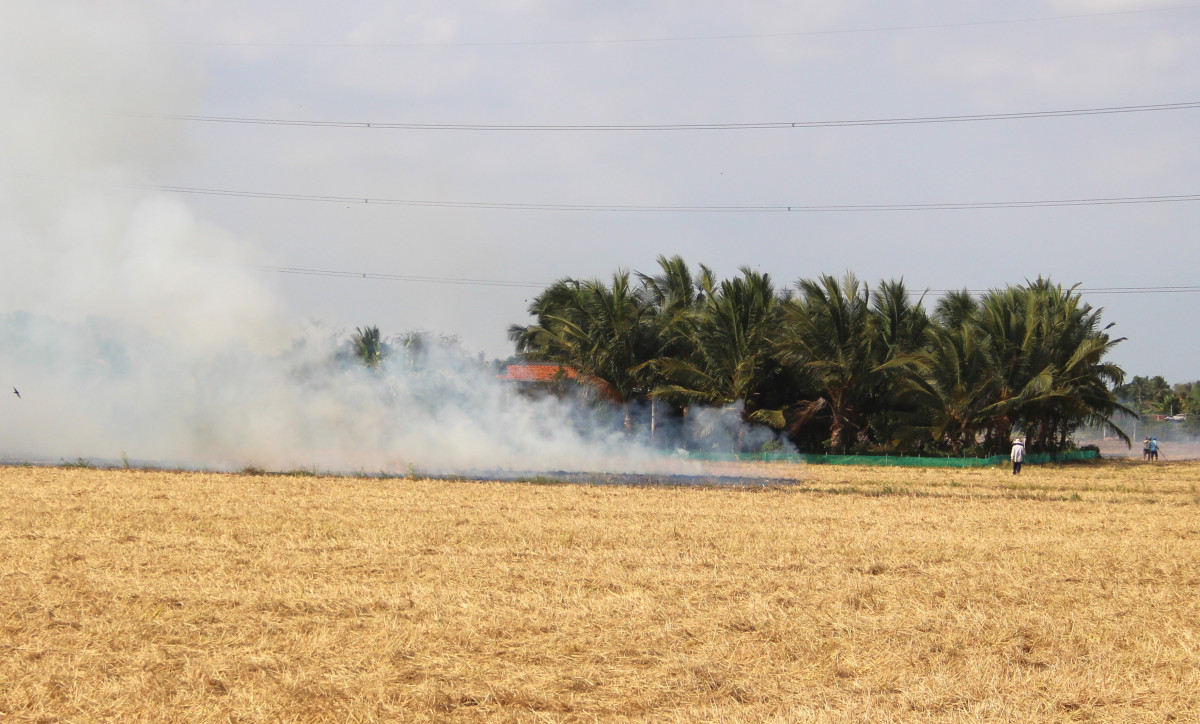 Trước đây, rơm rạ thường được nông dân thu gom, dùng làm chất đốt, thức ăn cho gia súc. Tuy nhiên, những năm gần đây, phần lớn nông dân thường đốt rơm rạ ngay tại ruộng sau khi thu hoạch. Theo ghi nhận, trên các cánh đồng tại huyện Thủ Thừa, Tân Trụ,…, sau khi thu hoạch lúa Thu Đông 2023, nông dân đốt rơm rạ ngay tại ruộng.