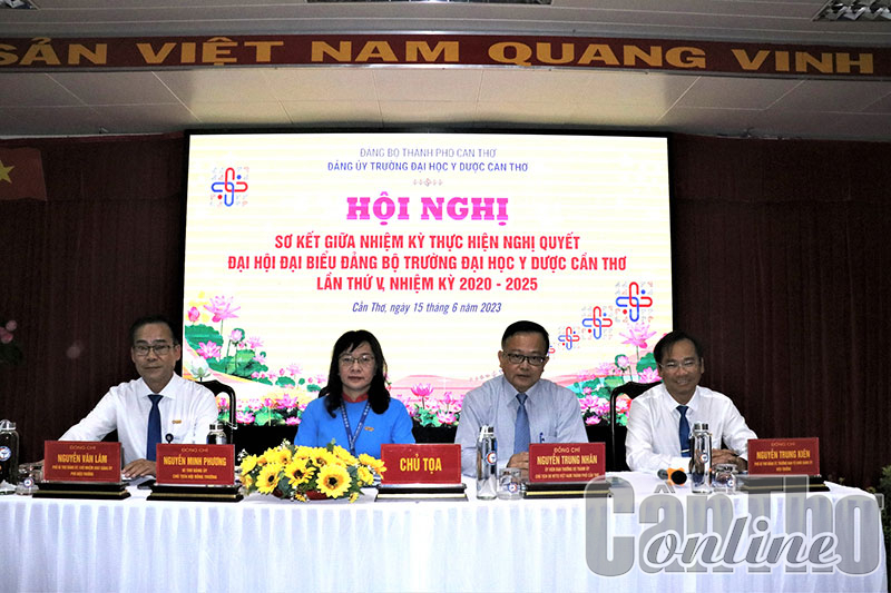 (CT) - Chiều 15-6, Ðảng ủy Trường Ðại học Y Dược Cần Thơ tổ chức hội nghị sơ kết giữa nhiệm kỳ thực hiện Nghị quyết Ðại hội đại biểu Ðảng bộ Trường nhiệm kỳ 2020-2025. Ðồng chí Nguyễn Trung Nhân, Ủy viên Ban Thường vụ Thành ủy, Chủ tịch Ủy ban MTTQVN TP Cần Thơ, cùng lãnh đạo các Ban xây dựng Ðảng Thành ủy đến dự.