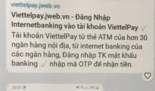 Trang web này có tên khá giống trang web chính thức của ứng dụng ViettelPay, do đó người dân sẽ rất dễ nhầm tưởng đây là web chính thức và đăng nhập tài khoản. Khi có được thông tin, các đối tượng sẽ kiểm soát được tài khoản của khách hàng và thực hiện các hành vi như: chuyển khoản, rút tiền, đăng ký vay online…