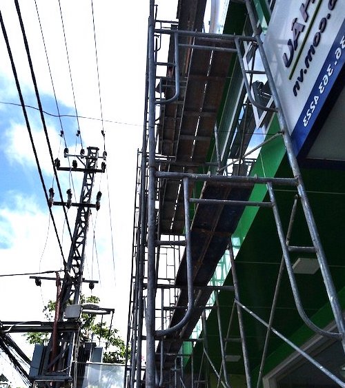 | Công trình xây dựng vi phạm hành lang an toàn lưới điện cao áp trên đường Núi Thành (Đà Nẵng). |