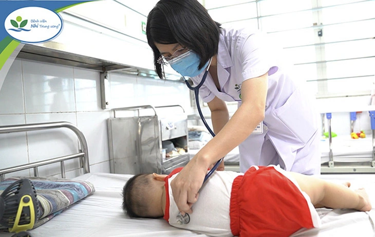 Bác sĩ Trung tâm Bệnh nhiệt đới, Bệnh viện Nhi Trung ương, đang khám lại cho một trẻ mắc tay chân miệng. (Ảnh tư liệu: Bệnh viện Nhi Trung ương)