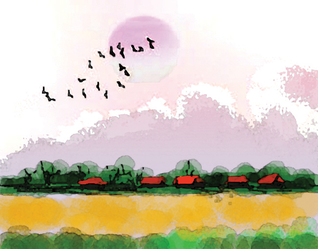 Như một cánh chim lưu lạc trở về/ Ngang cánh đồng mùa gió nồm rong ruổi/ Nhặt chiếc lá từ cội cành trăm tuổi/ Dưới bàn chân là núm ruột quê nhà