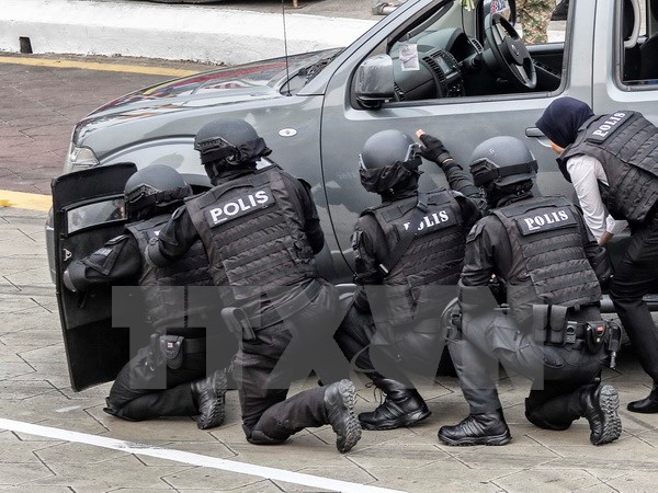 Cảnh sát chống khủng bố Malaysia tham gia công tác huấn luyện nghiệp vụ tại Kuala Lumpur. (Nguồn: EPA/TTXVN)