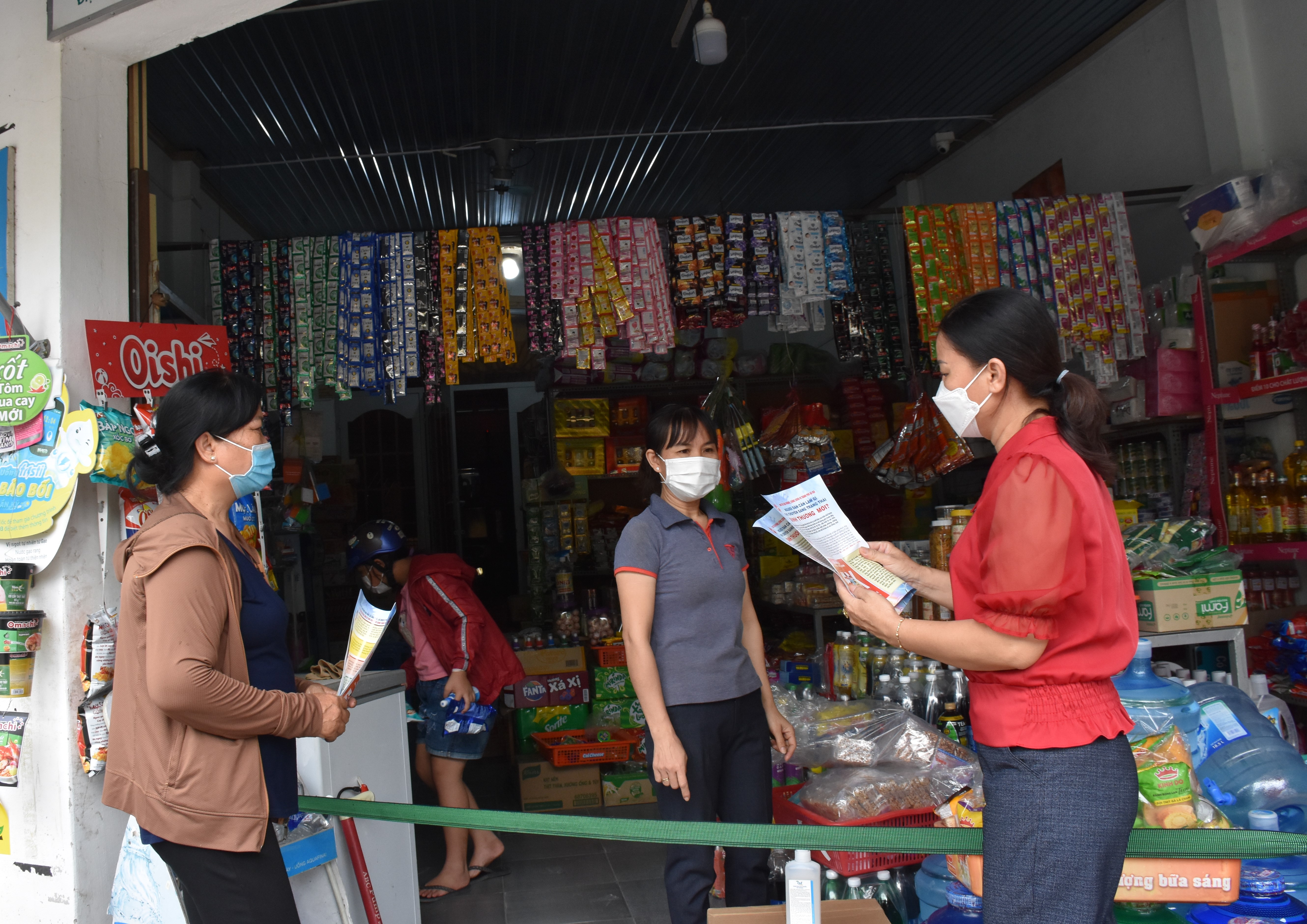 | Thành viên “Tổ COVID-19 cộng đồng” KP2, phường Phước Nguyên vận động hộ kinh doanh tại tổ 13, thực hiện tốt công tác phòng, chống dịch. (Ảnh: Nhã Uyên) |