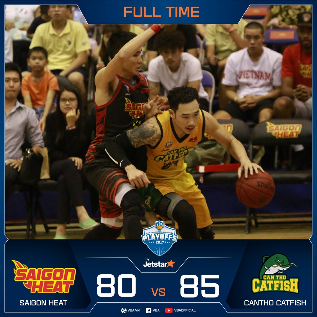 (CTO) – Mở màn vòng bán kết VBA 2017, Cantho Catfish đã có chiến thắng kịch tính trước Saigon Heat trong trận phải đấu thêm hiệp phụ, lúc 19 giờ ngày 8-11, tại Nhà thi đấu Hồ Xuân Hương, TP Hồ Chí Minh.