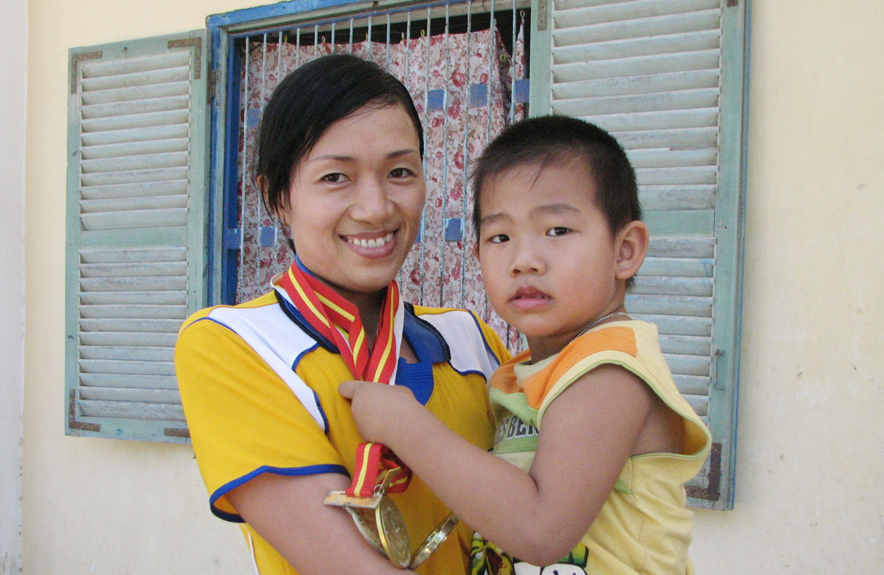 Huệ bên con trai lúc 4 tuổi