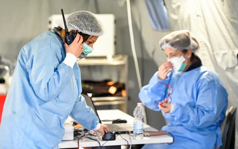 Nhân viên y tế Italy đối đầu với dịch Covid-19. Ảnh: AP.