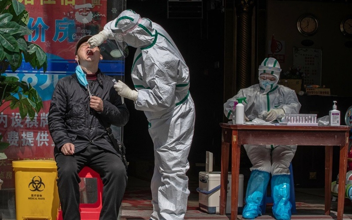 Xét nghiệm Covid-19 ở Vũ Hán, Trung Quốc. Ảnh: EPA.