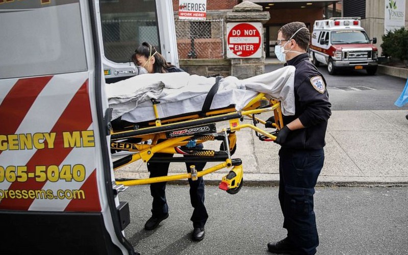 Bệnh nhân Covid-19 trên cáng ở New York, Mỹ. Ảnh: ABC News.