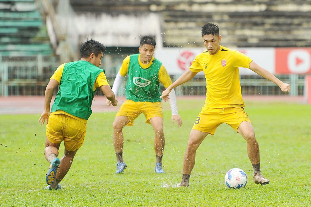 Câu lạc bộ Long An tập luyện dưới mưa, sẵn sàng tiếp TP.HCM trên sân nhà
