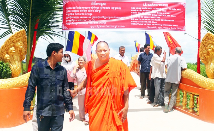 Đại đức Thạch Đa Ra chia sẻ: với vai trò đảng viên là Trụ trì ở một ngôi chùa vùng sông nước, chứng kiến cảnh các cháu nhỏ đi học, các cụ đi chùa và bà con ở ấp vận chuyển nông sản gặp khó khăn trên những cây cầu tre, cầu ván tạm bợ, sư mong muốn chung tay cùng đảng bộ xã đóng góp công đức xây dựng cây cầu phục vụ bà con đi lại thuận tiện hơn. Hiện, cây cầu thứ 07 này, thi công hoàn thành hơn 80%, dự kiến đưa vào sử dụng trước tết Nguyên đán Quý Mão 2023.
