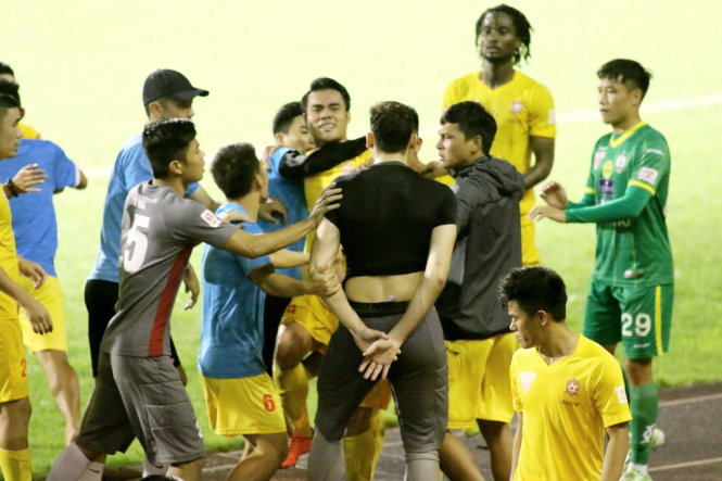 Khi vào đến khu vực kỹ thuật của đội, thủ môn Đặng Văn Lâm, tiền đạo Nguyễn Đình Bảo và tiền vệ Vương Quốc Trung đã bực tức tranh cãi với nhau về tình huống dẫn đến bàn thua rồi lao vào định đánh nhau. May mà các đồng đội và ban huấn luyện CLB Hải Phòng đứng gần đó đã kịp can thiệp.