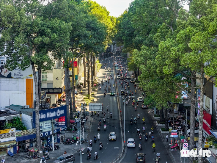 Một số cây xanh đầu đường Ba Tháng Hai (quận 10) nằm trong diện bị đốn hạ để có mặt bằng làm tuyến metro số 2. (Ảnh: CHÂU TUẤN)