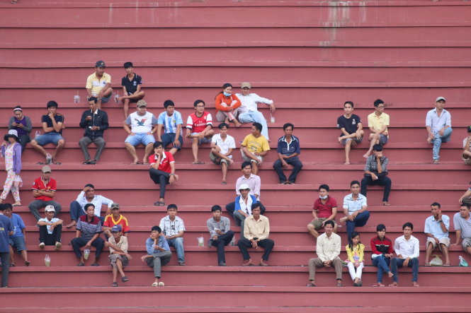 Hình ảnh CĐV thưa thớt trong trận Đồng Tâm Long An hòa Đồng Nai 4-4 ở vòng 24 V-League chiều 1-9 trên sân vận động Long An - Ảnh: N.K.