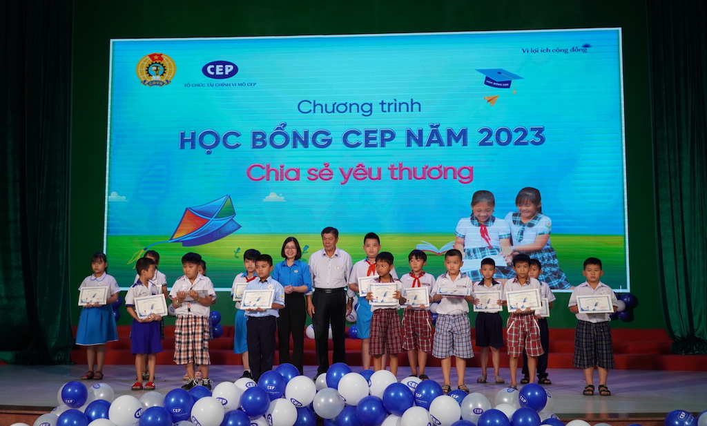 Dịp này Tổ chức Tài chính Vi mô CEP - Chi nhánh Bến Lức trao tặng 63 suất học bổng cho học sinh vượt khó học giỏi, là con công nhân khách hàng CEP với tổng số tiền 138,5 triệu đồng.
