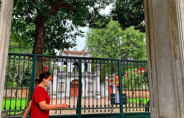 Văn Miếu Quốc tử giám đóng cửa những ngày dịch COVID-19. (Ảnh: Mai Mai/Vietnam+)