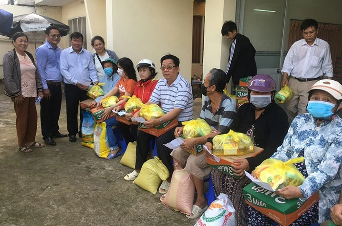 Người mù trên địa bàn quận Ninh Kiều nhận quà nhà hảo tâm trao tặng. Ảnh: CTV