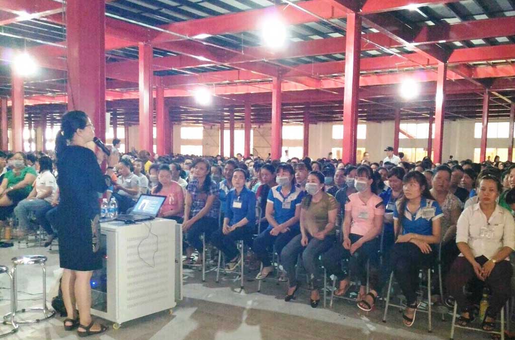 Cán bộ Công đoàn các Khu công nghiệp tuyên truyền pháp luật cho lao động nữ tại Công ty TNHH JiaHsin