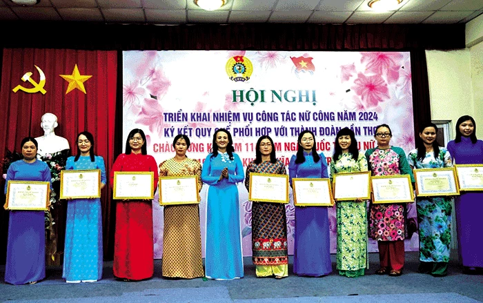 Theo thống kê của LĐLĐ TP Cần Thơ, toàn thành phố hiện có 94.989 CNVCLĐ; trong đó nữ CNVCLĐ chiếm trên 50%. Xác định tầm quan trọng của công tác vận động nữ CNVCLĐ trong tình hình mới, các cấp CĐ thành phố thường xuyên nắm bắt tình hình đời sống, việc làm, tâm tư, nguyện vọng của nữ CNVCLĐ; đặc biệt là nữ công nhân lao động trong các doanh nghiệp khu vực ngoài nhà nước, nữ công nhân lao động làm việc trong môi trường nặng nhọc, độc hại để có những đề xuất, tạo điều kiện cho lao động nữ. Thường xuyên quan tâm những vấn đề đặc thù về giới trong quan hệ lao động ở cơ sở, những vấn đề liên quan trực tiếp đến đời sống, việc làm, môi trường làm việc an toàn, chăm sóc sức khỏe sinh sản; tham gia xây dựng, sửa đổi, bổ sung các chế độ, chính sách liên quan đến lao động nữ... Riêng năm 2023, ban nữ công các cấp đã tham gia kiểm tra, giám sát 186 cơ quan, đơn vị, doanh nghiệp. Qua kiểm tra, giám sát, đa số đơn vị, doanh nghiệp thực hiện tốt, đầy đủ các chế độ chính sách đối với lao động nữ; nhiều đơn vị có phúc lợi cao hơn so với quy định, như: hỗ trợ nữ có con nhỏ dưới 36 tháng đi học tập 500.000 đồng/tháng, lao động nữ có thâm niên 2 năm làm việc, sau thời gian nghỉ thai sản trở lại làm việc được hỗ trợ 1 tháng lương cơ bản, hỗ trợ tiền gửi con từ 3 tháng đến 6 tuổi với mức 130.000 đồng/bé… Bên cạnh đó, ban nữ công các cấp thường xuyên duy trì mô hình trợ vốn, góp vốn xoay vòng với mức đóng góp từ 500.000 đồng đến 1 triệu đồng/tháng/chị, mức trợ vốn từ 5-10 triệu đồng/chị.