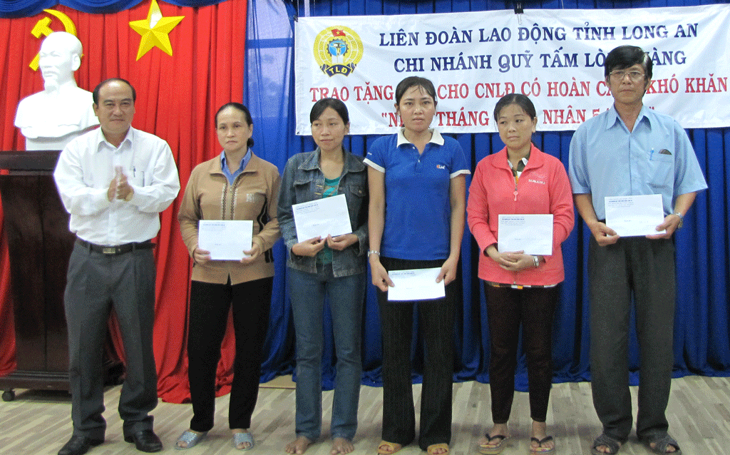 Trao đổi cùng chúng tôi, Chủ tịch LĐLĐ huyện Cần Giuộc - Nguyễn Văn Mé cho biết: “Trên địa bàn huyện hiện nay có khoảng 30.000 CNLĐ, trong đó, khoảng 40% CNLĐ nhập cư đang ở thuê tại các khu nhà trọ. Năm nay, LĐLĐ huyện dự kiến sẽ trao tặng 105 phần quà (mỗi phần quà trị giá 500.000 đồng) cho CNLĐ nghèo tại các Cty, xí nghiệp trong huyện từ nguồn của tỉnh, huyện và LĐLĐ huyện vận động các mạnh thường quân.”