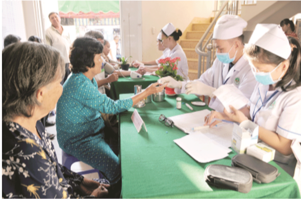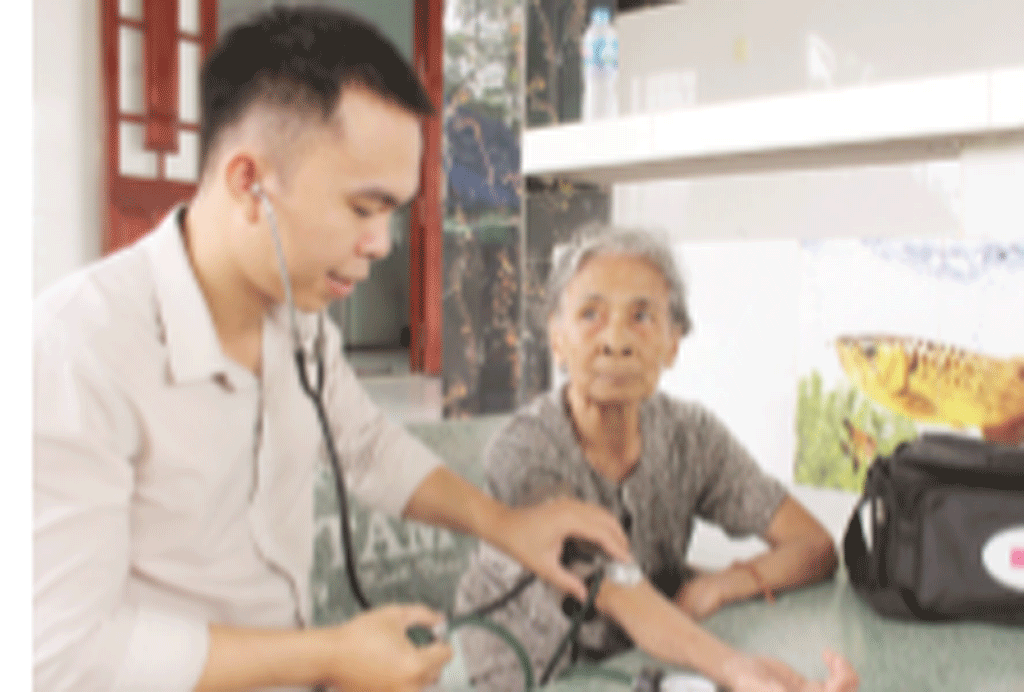 Những người cao tuổi là người có công, đi lại khó khăn được trạm y tế xã cử cán bộ y tế đến khám và điều trị bệnh tại nhà