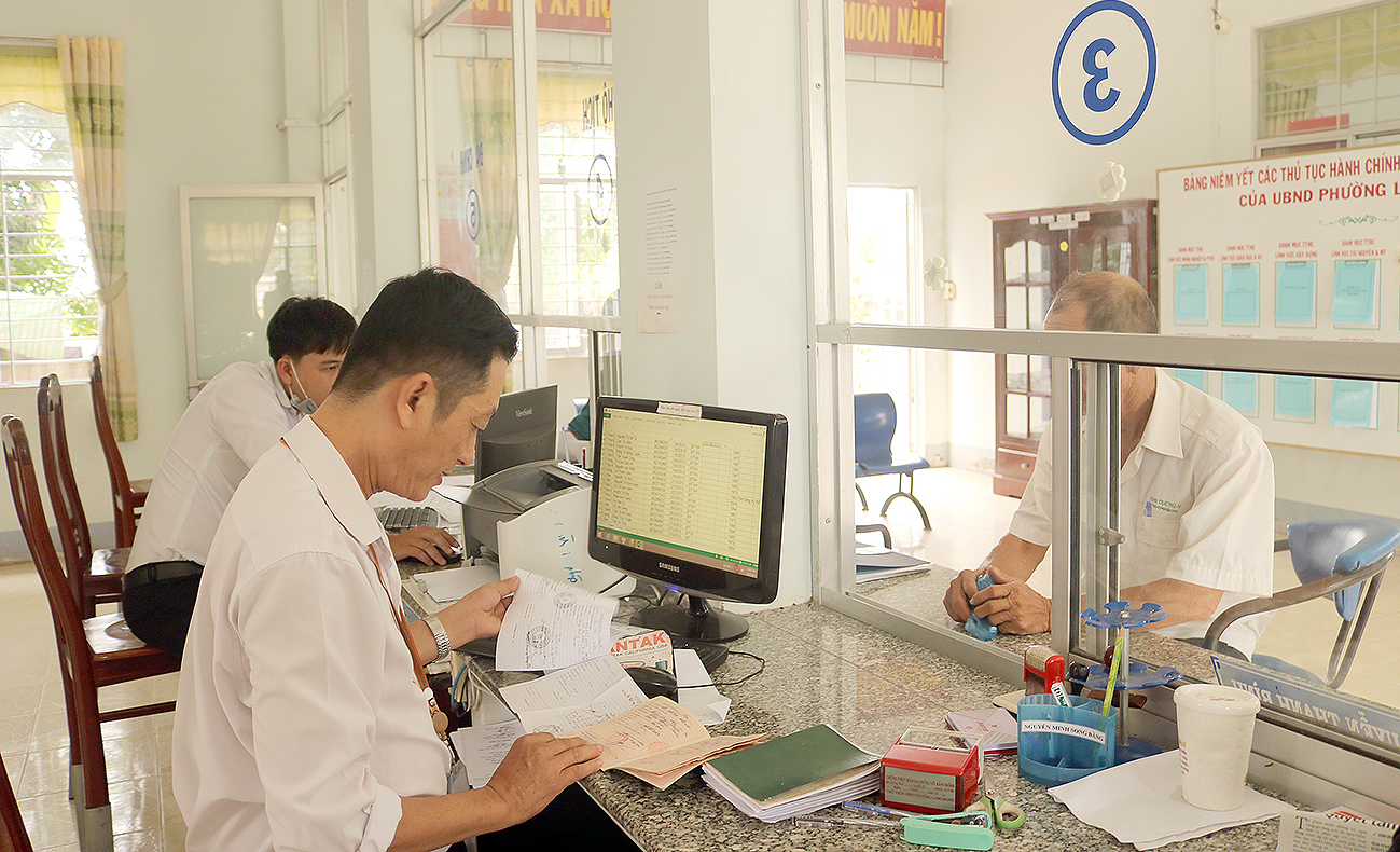 Người dân đến làm hồ sơ hành chính tại Bộ phận Tiếp nhận và Trả kết quả của UBND phường Long Hưng, quận Ô Môn. Ảnh: HIỂN DƯƠNG