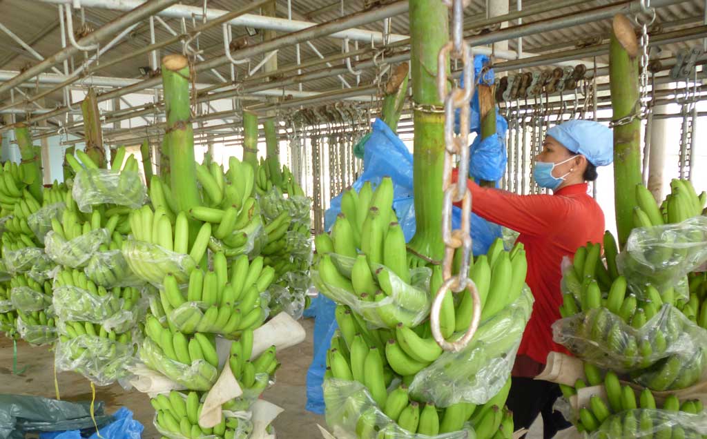 Chuối quày vừa cắt đưa vào sơ chế để xuất khẩu