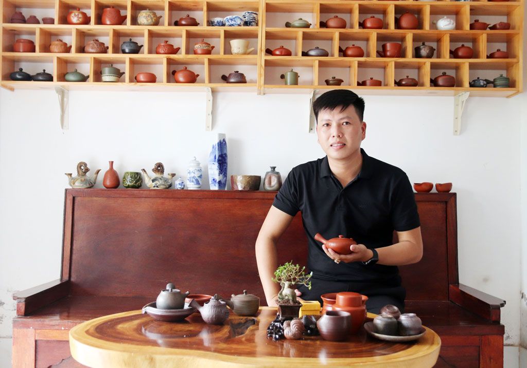 Hiện nay, thật khó để có thể thống kê hết số sản phẩm mà anh đã sưu tầm, chỉ riêng tại phòng khách có gần 200 sản phẩm, trong đó, nhiều nhất là ấm trà với gần 70 chiếc. Ngoài ra, anh còn đặt gốm tại nhiều không gian khác trong gia đình, mỗi sản phẩm có giá dao động từ vài chục ngàn đến vài triệu đồng/sản phẩm.