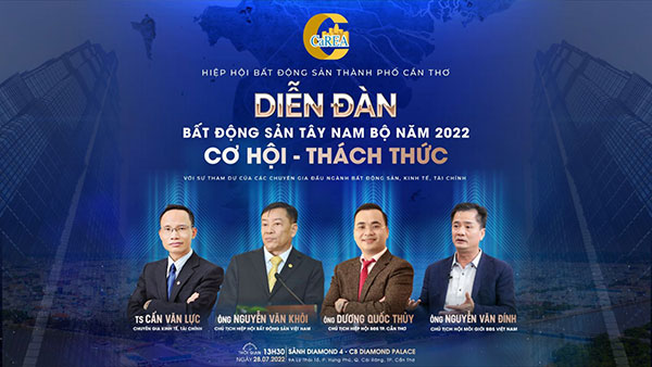 Diễn đàn Bất động sản Tây Nam Bộ 2022 với chủ đề “Cơ hội - Thách thức” diễn ra vào 13h30 ngày 28-7-2022 tại Trung tâm hội nghị CB Diamond Palace Cần Thơ. Sự kiện có sự tham dự của lãnh đạo UBND thành phố và các sở, ban, ngành TP Cần Thơ, các cơ quan thông tấn báo chí cùng hàng trăm doanh nghiệp, nhà đầu tư BĐS tại TP Cần Thơ và các tỉnh ĐBSCL.