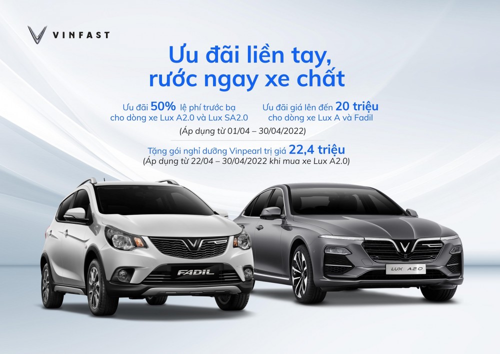 Thấu hiểu nhu cầu nghỉ ngơi trong giai đoạn “bình thường mới”, VinFast đưa ra chương trình ưu đãi siêu hấp dẫn dành riêng cho những khách hàng mua xe Lux A2.0 từ 22/04 đến hết 30/04/2022.