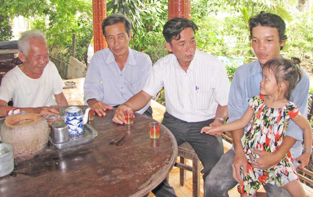 Theo chân cán bộ xã Tân Đông, huyện Thạnh Hóa, chúng tôi đến thăm gia đình nạn nhân Huỳnh Quốc Xuyên, ngụ ấp 3. Được biết, cha anh là ông Huỳnh Thanh Văn, thương binh 4/4, bị nhiễm chất độc da cam. Ngoài vết thương ở đầu, ông còn bị một mảnh đạn sau bả vai. Anh Xuyên là người duy nhất trong 7 anh em bị nhiễm chất độc hóa học. Tuy có gia đình và ra ở riêng nhưng mọi việc lớn nhỏ đều được ba mẹ anh hướng dẫn, tính toán dùm.