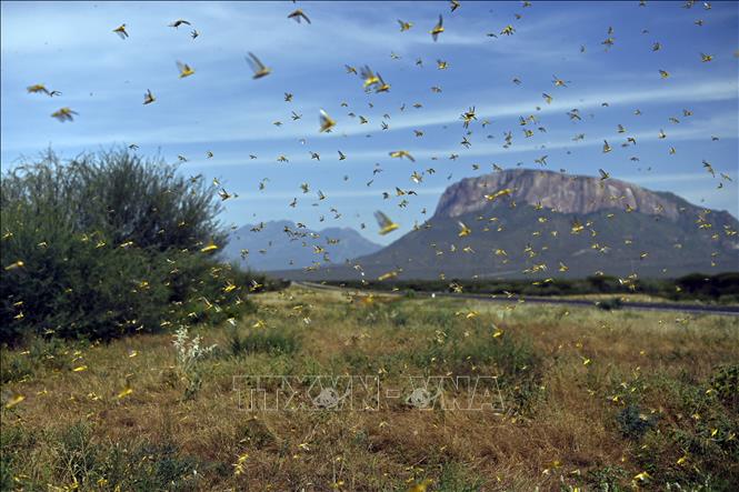 | Một bầy châu chấu tại khu vực làng Lerata ở Samburu, Kenya. Ảnh: AFP/TTXVN |