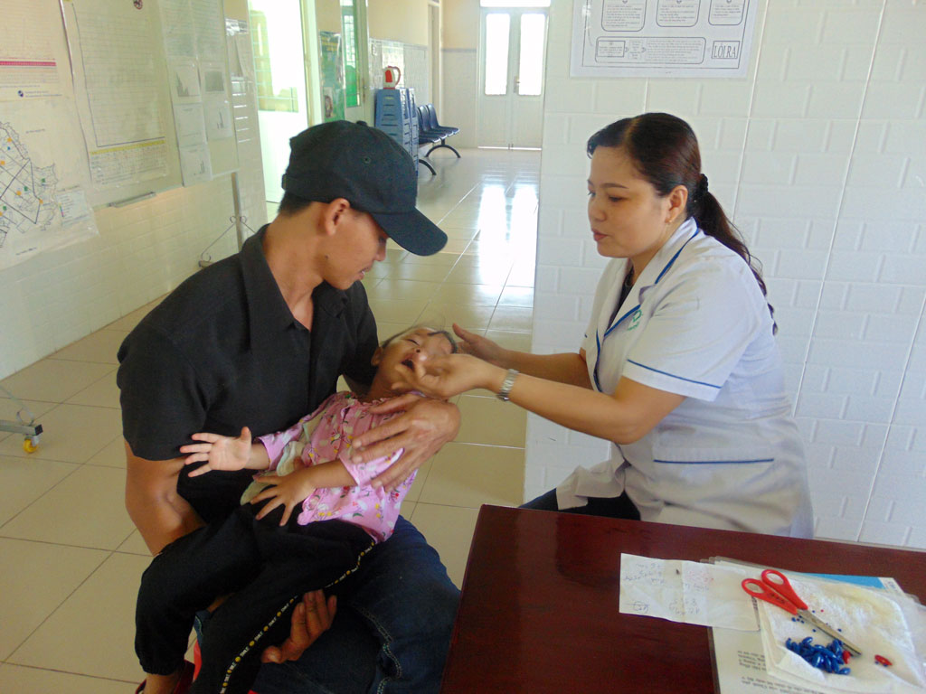Trẻ được cho uống Vitamin tại Trạm y tế xã Hiệp Thạnh