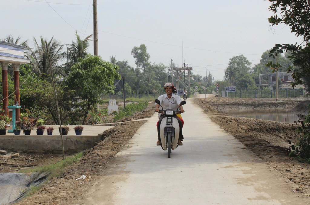 Con đường nhỏ hẹp, gồ ghề ở ấp Vĩnh Viễn đã “hóa thân” thành đường bê tông mặt đường 3m, đem lại bộ mặt mới cho xã Thanh Vĩnh Đông