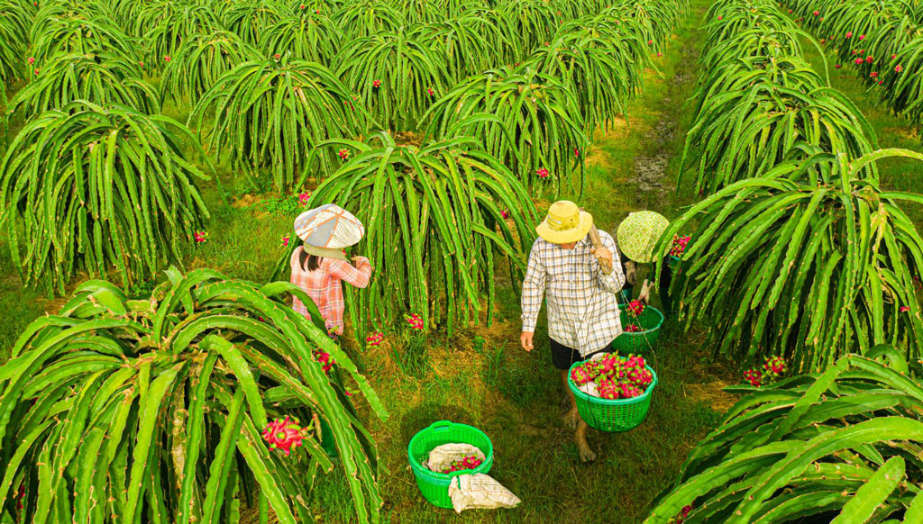 Mục tiêu đến năm 2025, huyện sẽ xây dựng 5.500ha thanh long ứng dụng công nghệ cao, 300ha thanh long GlobalGAP và 3.000ha thanh long VietGAP. (ảnh Hoàng Thuấn)