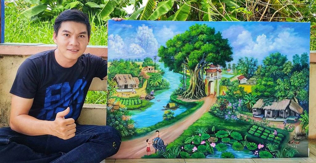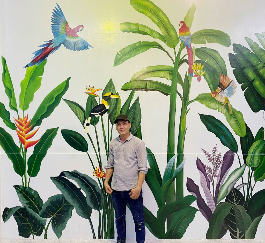 Vẽ tranh, nhận thi công tranh tường, trang trí trái cây chưng tết, phát triển Câu lạc bộ Mỹ thuật tại nhà cho HS, học luyện viết chữ đẹp,... là cách thầy tiếp tục “nuôi dưỡng” đam mê sau những giờ lên lớp. Học chuyên ngành Mỹ thuật nên thầy không gặp nhiều khó khăn khi làm những công việc liên quan đến vẽ, tuy nhiên, khi nhận thi công tranh tường và trang trí trái cây chưng tết, khó nhất là quá trình lên ý tưởng và làm hài lòng khách hàng. Được biết, tranh tường của thầy được nhiều khách hàng trong và ngoài tỉnh yêu thích. Nhiều hôm, thầy tăng ca để hoàn thành công trình cho khách theo đúng tiến độ.