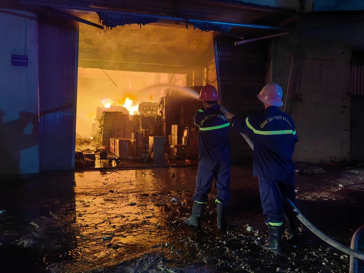 Ghi nhận tại hiện trường, kho hàng này chứa hàng hóa nhu yếu phẩm, mì gói, bánh kẹo… nên đám cháy lan rất nhanh, sau đó lan ra khu vực để xe điện 4 bánh. Tổng cộng 4 xe ô tô điện bị ngọn lửa thiêu rụi.
