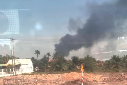 Cột khói đen bốc cao từ nhà xưởng cơ sở sản xuất mút xốp