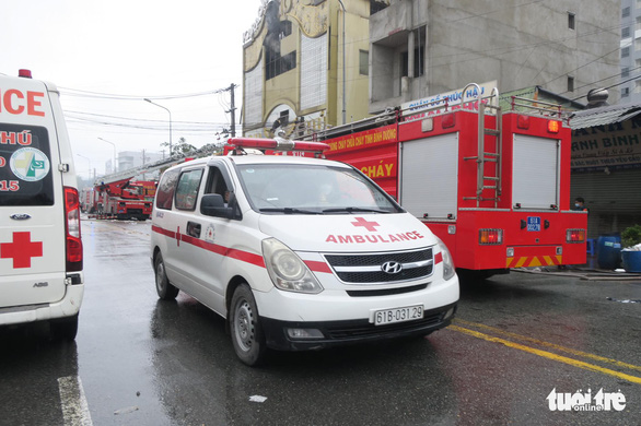 Lúc 13h40, xe cứu thương đậu trước karaoke An Phú đã rời khỏi hiện trường - Ảnh: T.T.D.