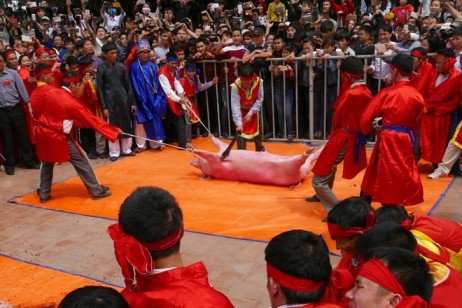 Lễ chém lợn ở làng Ném Thượng. Ảnh: VnEpress