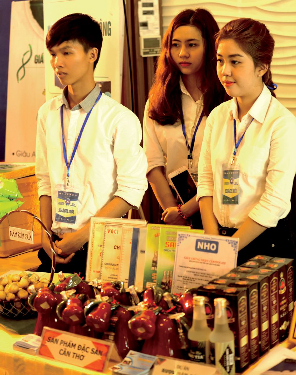 Lớp trẻ quảng bá sản phẩm của Cần Thơ tại Mekong Connect năm 2016. Ảnh: CHÂU LAN