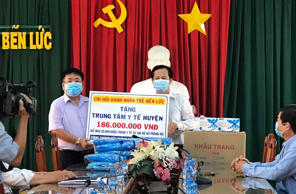 Theo đó, Chi hội trao 186 triệu đồng đến Trung tâm Y tế huyện Bến Lức để mua 25.000 khẩu trang y tế và 400 bộ đồ phòng hộ; 30 triệu đồng đến Bệnh viện dã chiến và khu cách ly tập trung.
