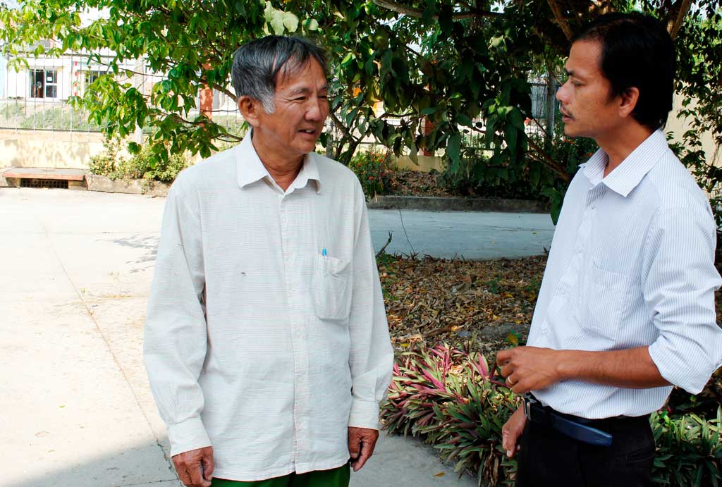 Ông Trần Công Anh (bên trái) tích cực thực hiện công tác từ thiện - xã hội