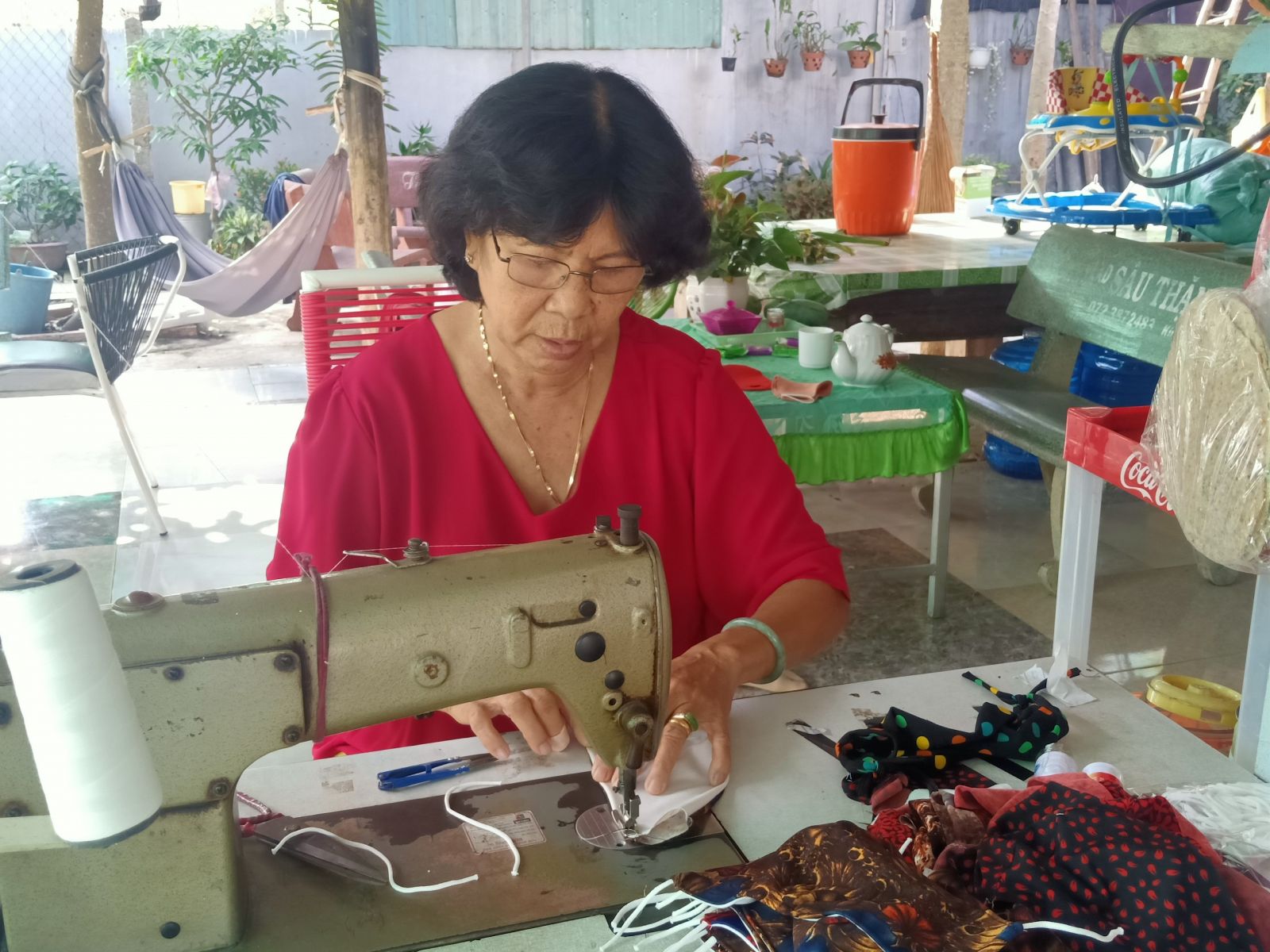 Gần đây, ấp 2 còn tiên phong với mô hình may khẩu trang tặng miễn phí giữa mùa dịch. Bà Oanh tập hợp các chị em biết may đến nhà may khẩu trang. Mỗi ngày, trung bình một người may xuyên suốt được 100 cái khẩu trang, sau đó đem phát đến từng hộ gia đình.