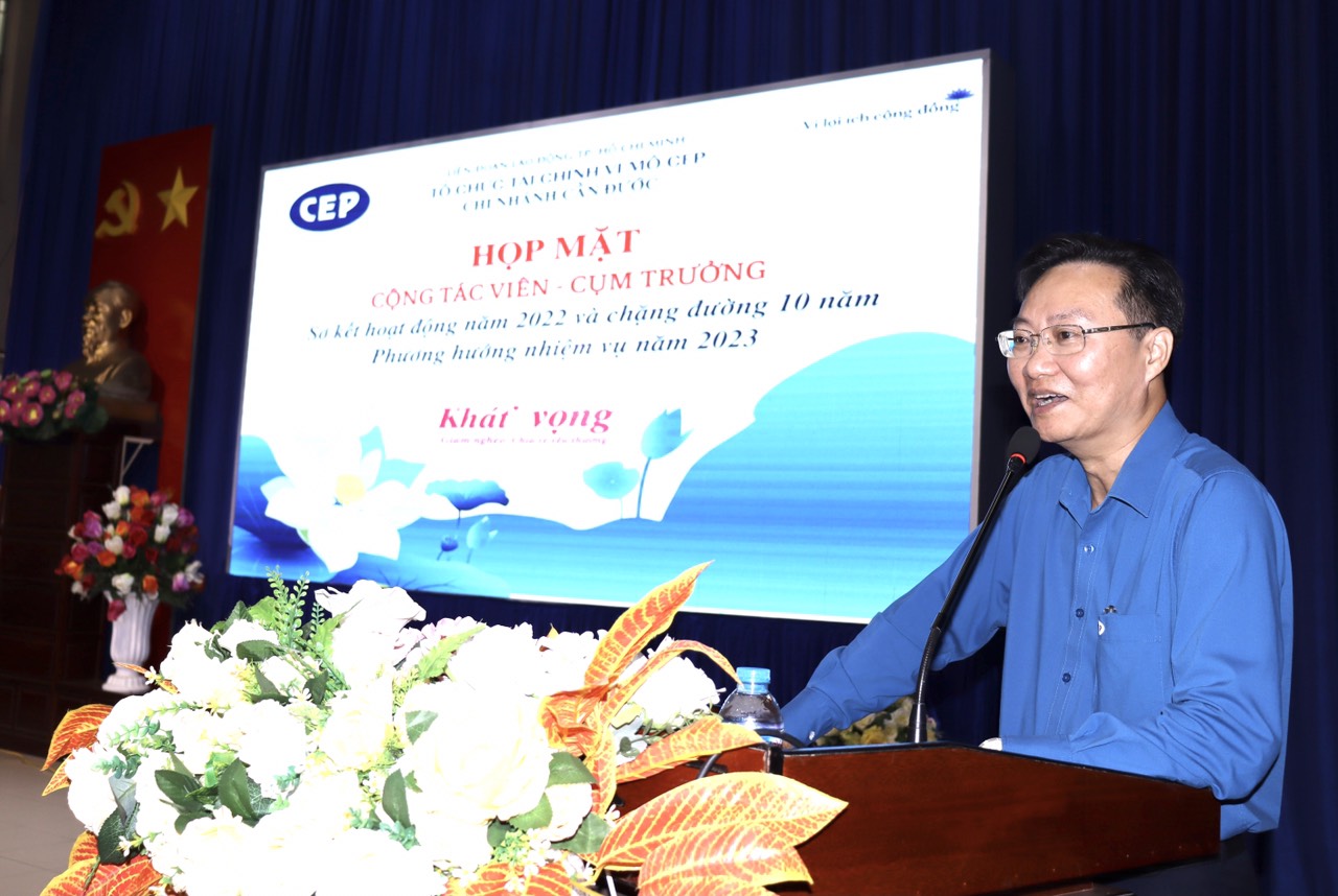 Tại hội nghị, Giám đốc Chi nhánh CEP Cần Đước - Phạm Ngọc Dược cho biết, chi nhánh CEP Cần Đước là một trong 36 chi nhánh của hệ thống CEP, được thành lập tháng 10/2012. Qua 10 năm hoạt động, chi nhánh không ngừng nỗ lực tiếp cận và mở rộng phạm vi phục vụ. Đến nay, chương trình CEP đã có mặt tại 100% xã, thị trấn của 2 huyện Cần Giuộc và Cần Đước. Đồng thời, đã cho vay hơn 121.000 khách hàng với số tiền trên 1.700 tỉ đồng. Đến hết tháng 9/2022, chi nhánh đang phục vụ gần 10.900 khách hàng với dư nợ gần 129 tỉ đồng.